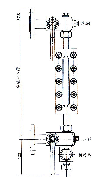 儀表上、下兩端裝有法蘭與鍋爐或容器的法蘭連通,通過水位計可直接觀察到容器內液汽的實際高度