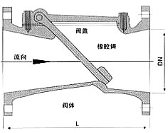 橡膠瓣止回閥主要由閥體、閥蓋及橡膠瓣三種主要零件組成。其中橡膠由鋼板、鋼棒及強化尼龍布做襯底,外層披覆橡膠制成,閥瓣開關壽命可達100萬次。該閥采用全流面積式設計,具有水冰損失小,不易堆積雜物,維修簡便等特性。該閥主要適用于給排水系統,可安裝于水泵出水口處,以防止倒流及水錘對泵損害。訪閥還可安裝在蓄水池進出水管的旁通管上,以防止池水倒流至給水系統中。