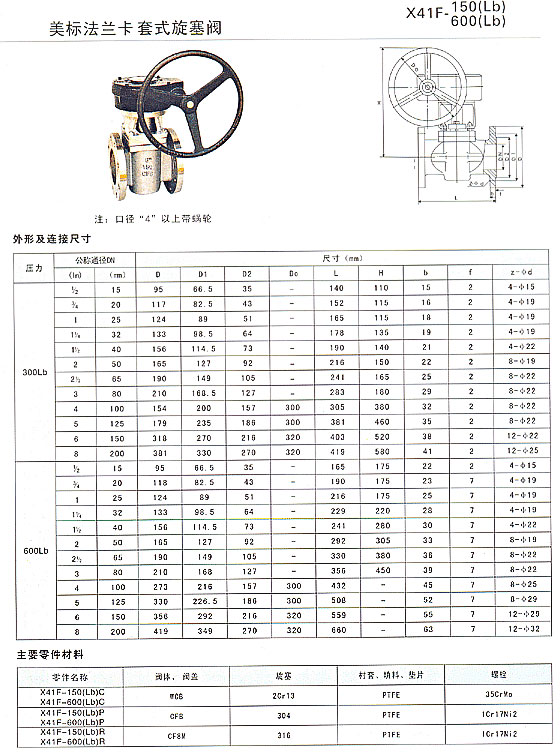 X41F美標(biāo)法蘭卡套式旋塞閥,主要性能規(guī)范