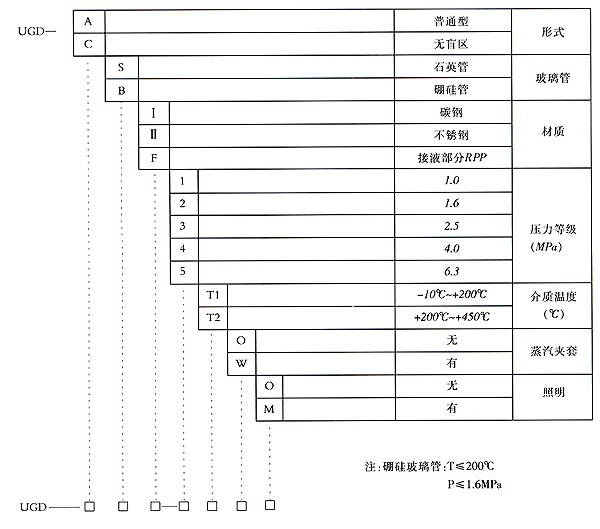 被測介質工作壓力:1.6(玻璃管),2.5,4.0,6.3MPa(石英管)