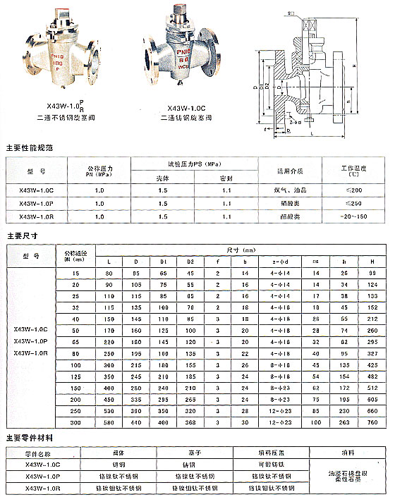 產品型號:X43W-1.0P/R;X43W-1.0C
