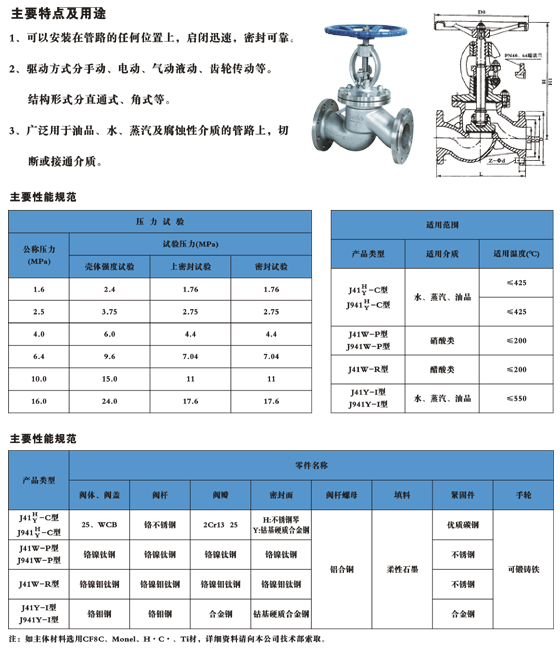 國標截止閥的啟閉件是圓柱形的閥瓣,密封面呈平面或錐面,閥瓣沿流體的中心線作直線運動。國標截止閥只適用于全開和全關,一般不用來調節流量,定做時允許作調節和節流